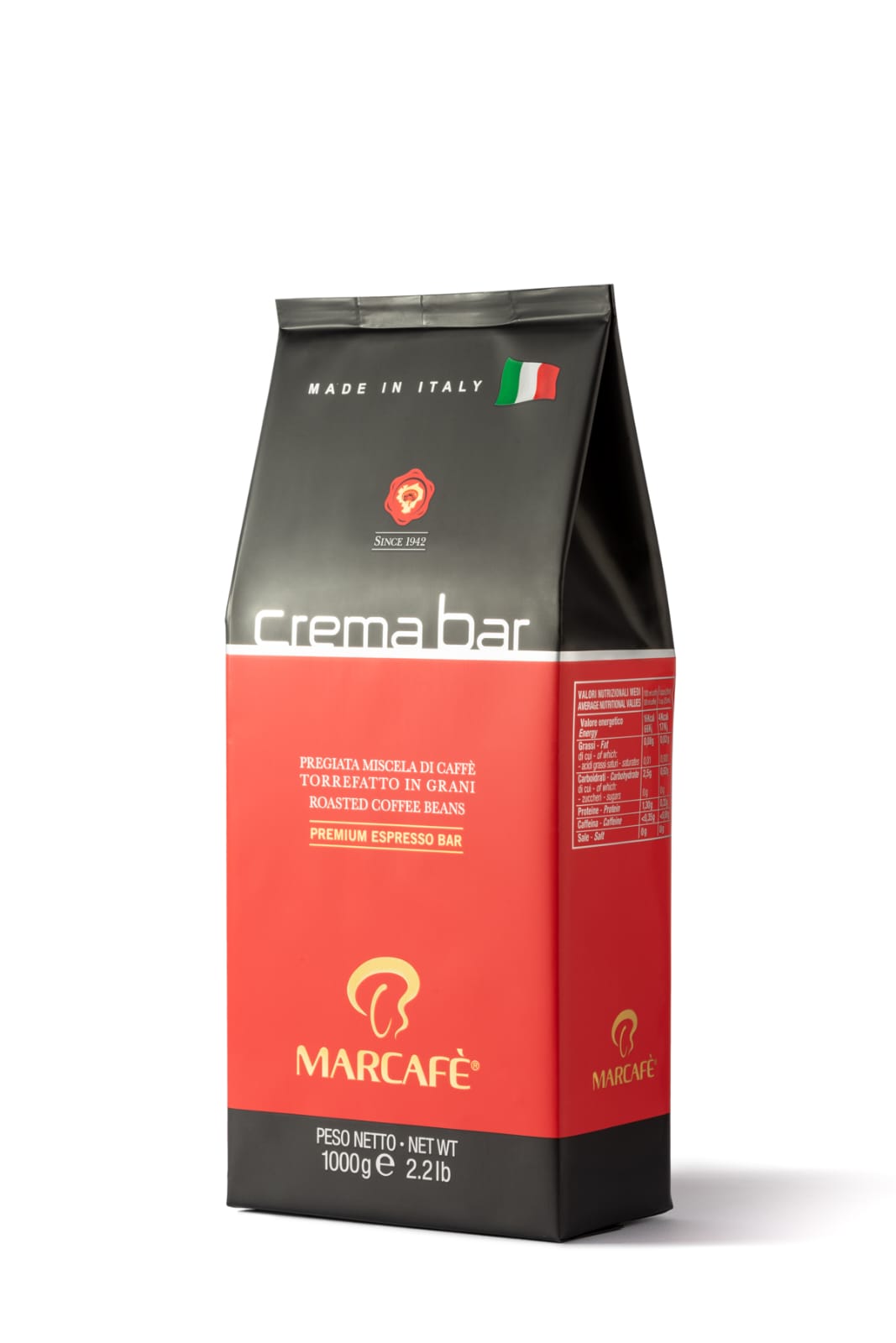 تقدّم Crema Bar مزيجاً مثالياً لإسبريسو قوي وغني بالقوام، يحتوي على 30% أرابيكا تمنح النعومة، مع نسبة روبوستا تمنحها كثافة عالية وكريمه سميكة مميزة. نكهة متوازنة وقوية تناسب عشّاق الإسبريسو الإيطالي